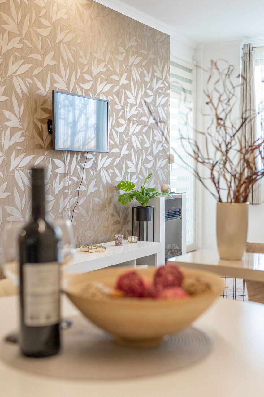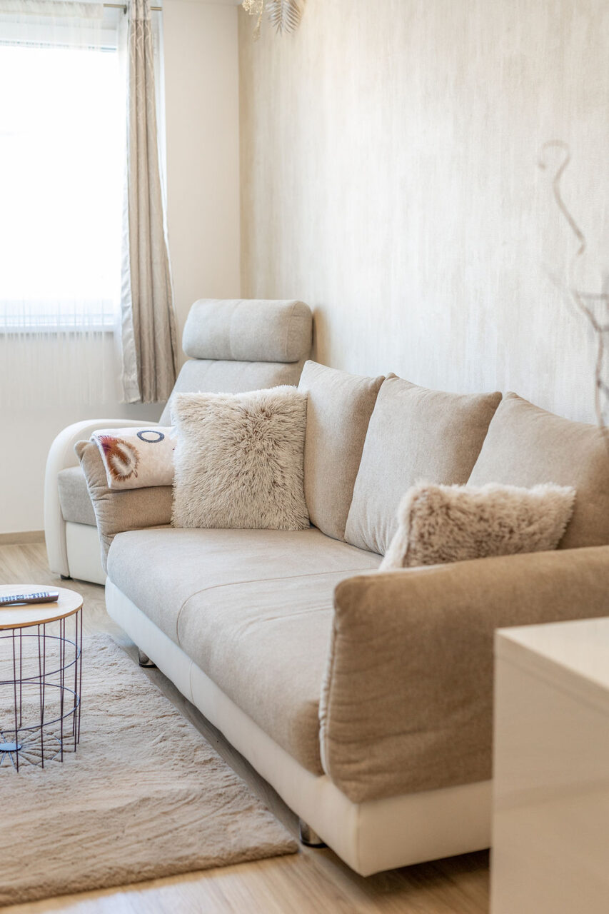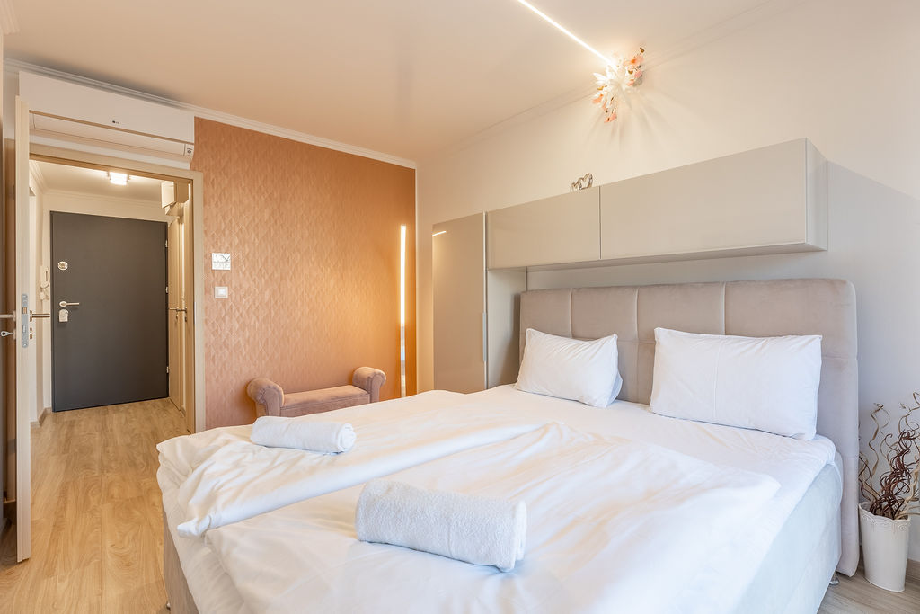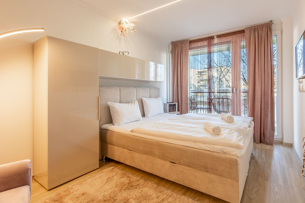 Az apartman nappaliból és egy hálóból áll. A hálószobában egy franciaágy található, míg a nappaliban kihúzható kanapé gondoskodik a kényelmes alvásról, 4 fő részére ajánljuk. Valóban minden igényt kielégítő módon lett felépítve és berendezve! Az apartman minden olyan kényelmi funkcióval ellátott ami egy tökéletes nyaraláshoz szükséges.