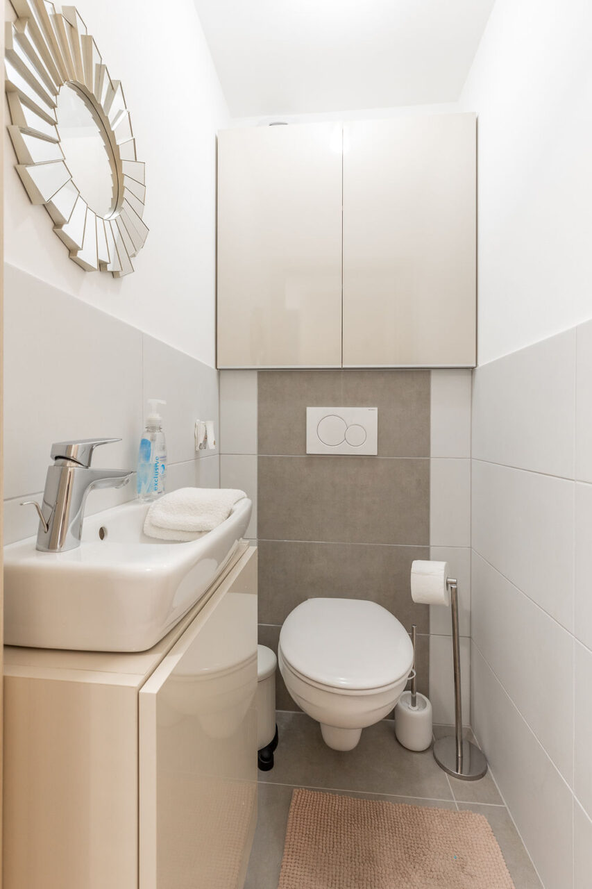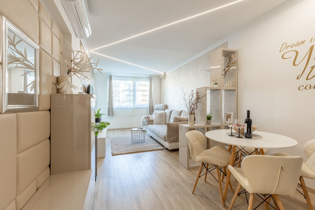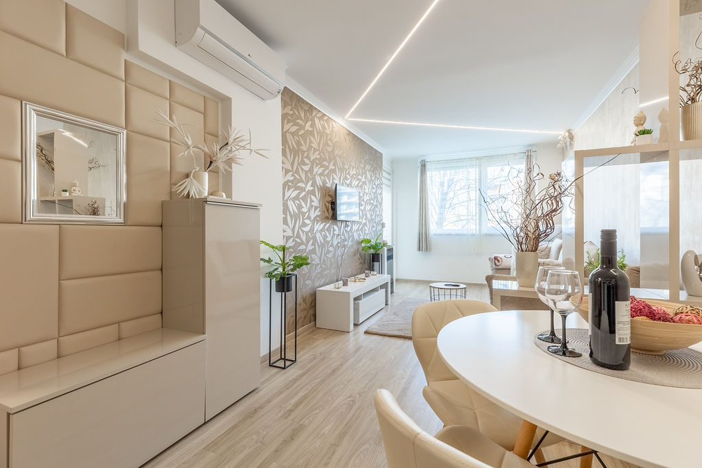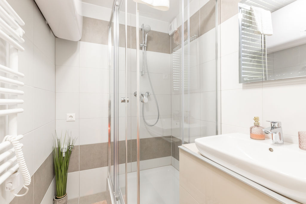 Az apartman nappaliból és egy hálóból áll. A hálószobában egy franciaágy található, míg a nappaliban kihúzható kanapé gondoskodik a kényelmes alvásról, 4 fő részére ajánljuk. Valóban minden igényt kielégítő módon lett felépítve és berendezve! Az apartman minden olyan kényelmi funkcióval ellátott ami egy tökéletes nyaraláshoz szükséges.
