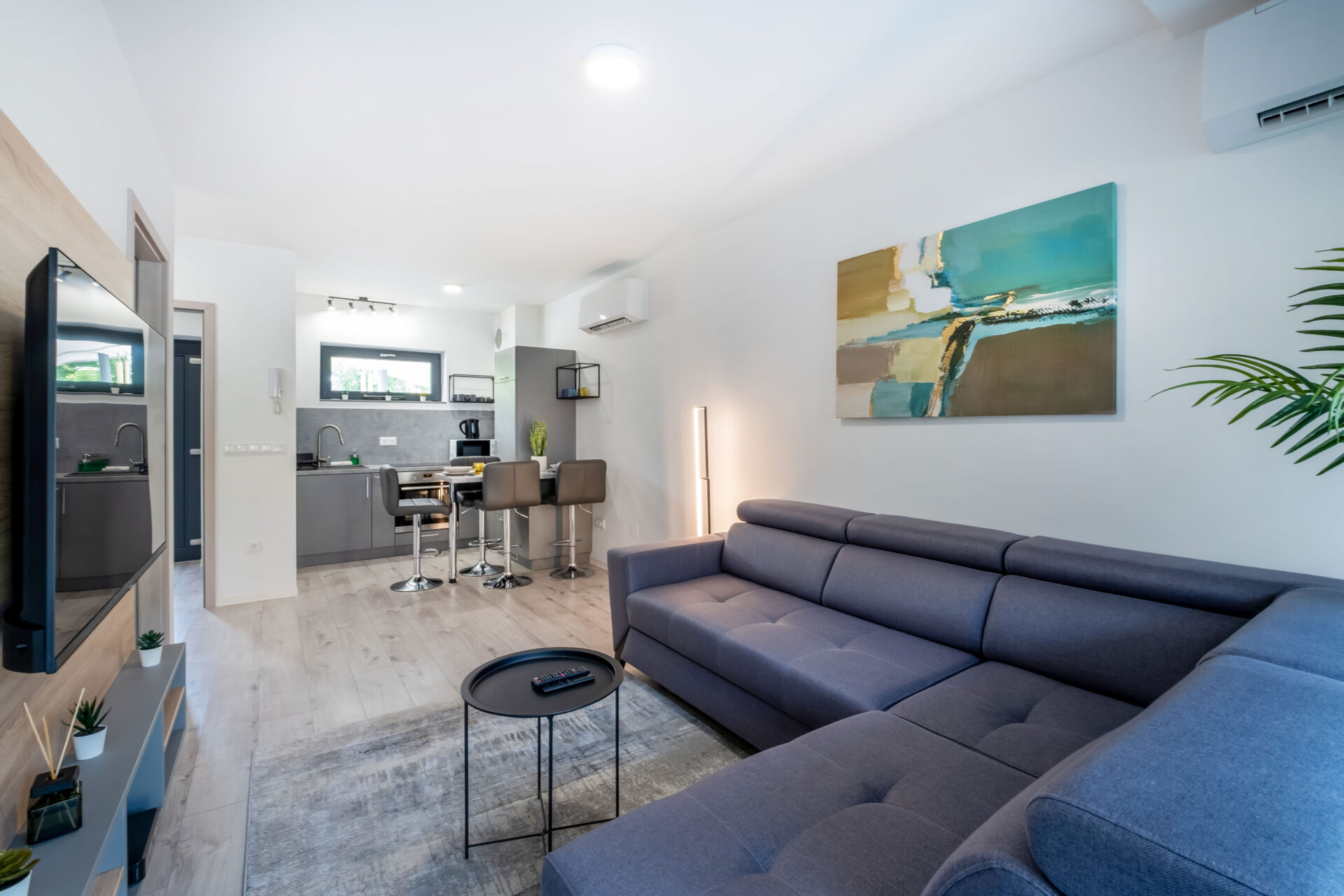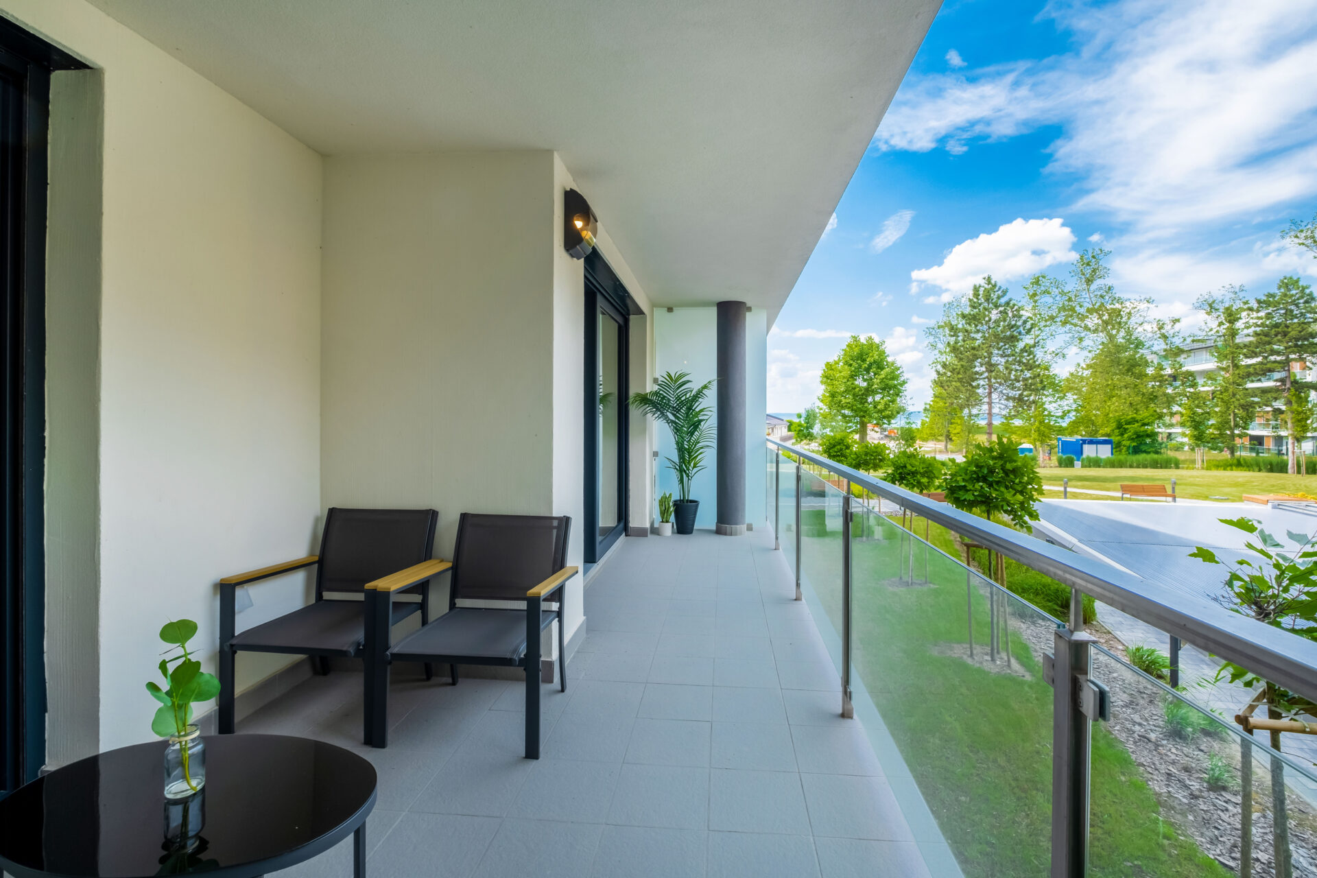 A kellemes hőmérsékletet a hőszivattyús hűtő-fűtő rendszer biztosítja, az apartman teraszáról élvezhetik a napsütést és a Balatoni levegő illatát.