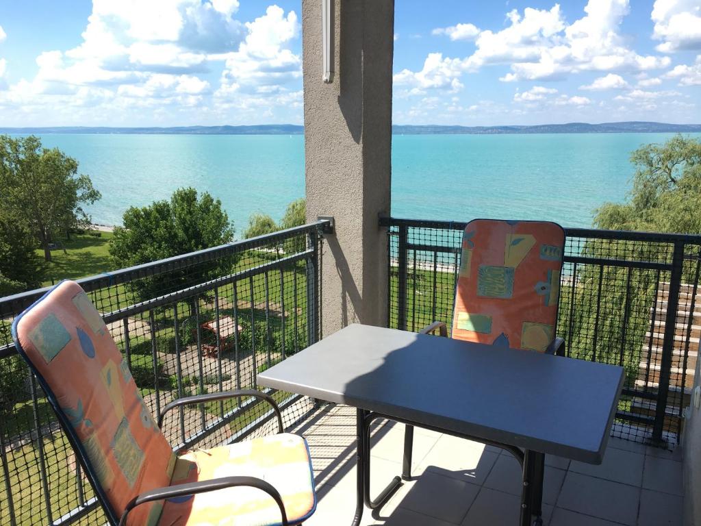 Szeretettel várjuk Önöket Siófok Aranypartján lévő apartmanunkba! A Beszédes József sétányon, szépén gondozott kerttel rendelkező, közvetlen vízparti, zárt telken található épületben található negyedik emeleti, igényesen berendezett és teljesen felszerelt, (klíma, internet, kerti bútorok, stb.) fantasztikus teljes balatoni panorámával rendelkező erkélyes stúdiónkba.