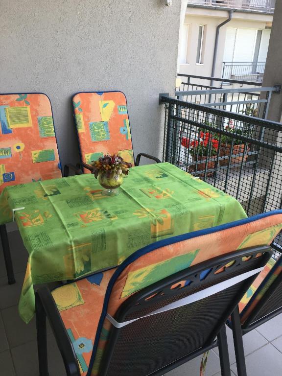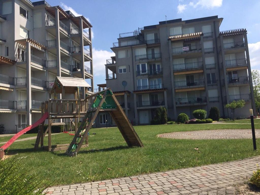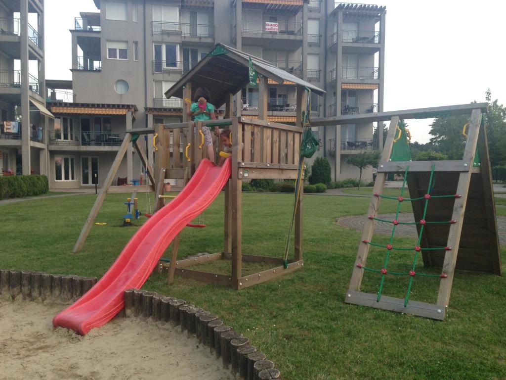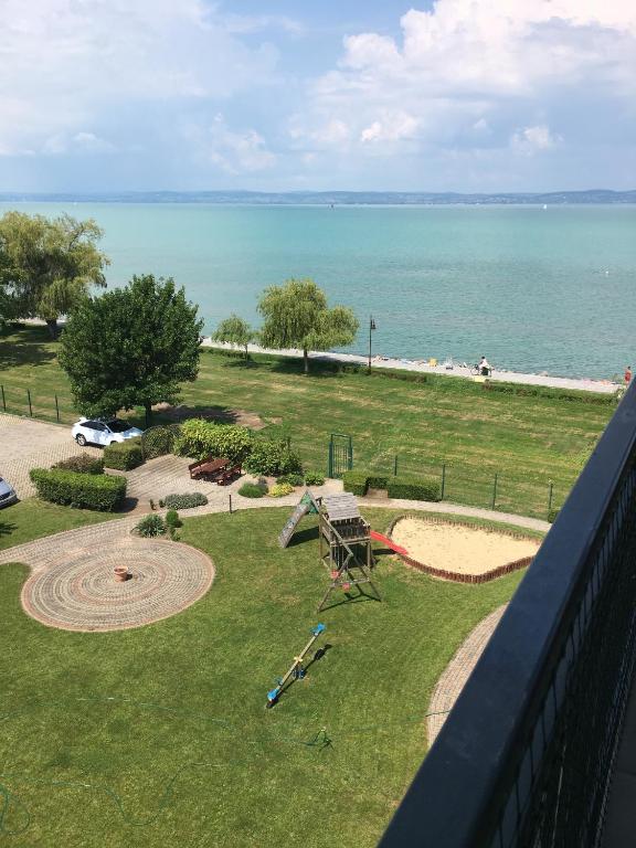 Az apartman maximum 4 férőhelyes, egy párnak vagy kis családosoknak alkalmas, tartozik hozzá udvari kocsi beálló is, illetve a házban van lift. A gyerekek számára a kertben játszótér is található, és a Balaton a kertkapun kisétálva csupán egy karnyújtásnyira van. Az apartman minden olyan kényelmi funkcióval ellátott ami egy tökéletes nyaraláshoz szükséges.