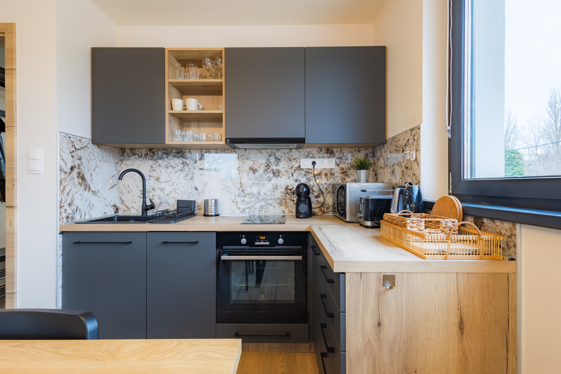 Az apartmanok teljesen felszereltek, minden olyan kényelmi funkcióval ellátott, ami a zavartalan pihenést biztosítja. Az apartmanház rendkívüli fekvése miatt különleges.