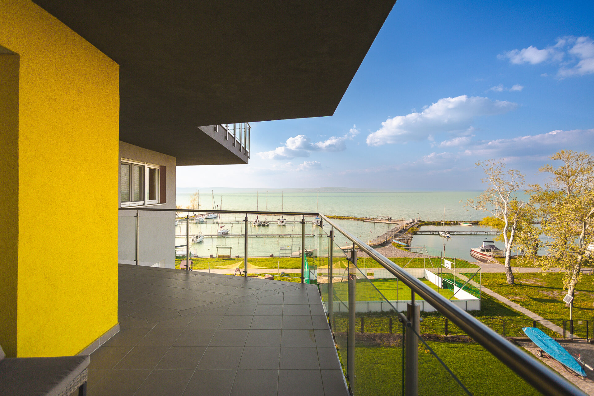 jó helyen jár! Hatalmas, zárt, kifogástalanul ápolt kert, fűtött medence + gyerekmedence, napozóágyak, 2 db modern játszótér, zárt parkoló, elektromos autó töltő, közvetlen strand és kikötő kapcsolat, és természetesen egy csodálatos panorámával rendelkező harmadik emeleti 60 négyzetméteres 2 hálószoba plusz nappalis, fürdőszobával és terasszal rendelkező luxus apartman!