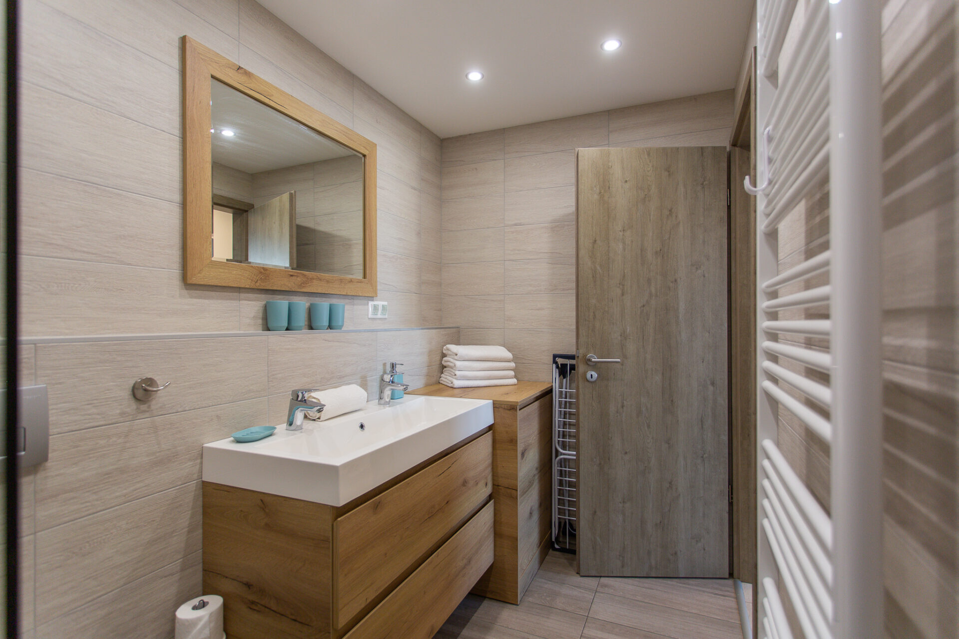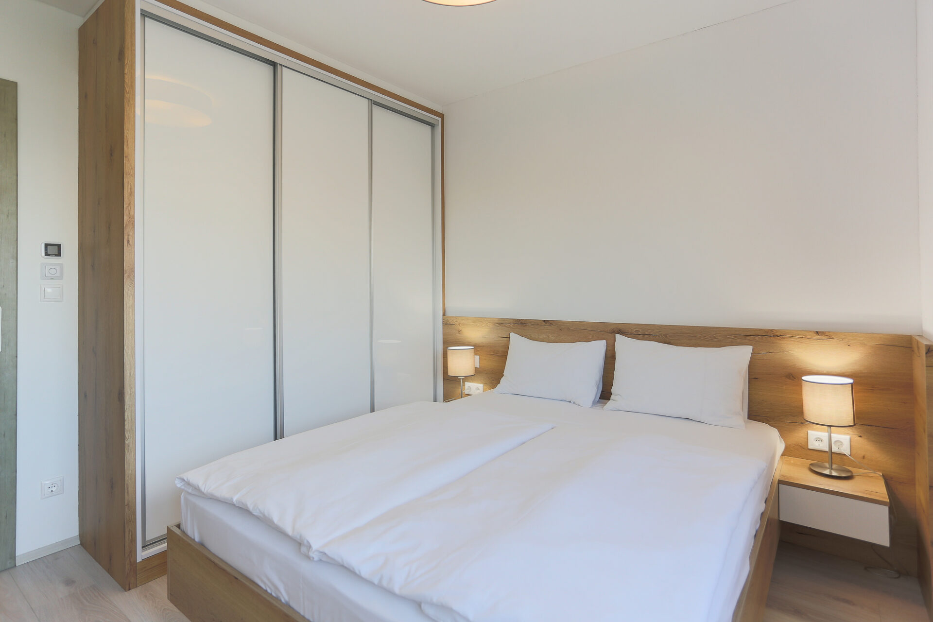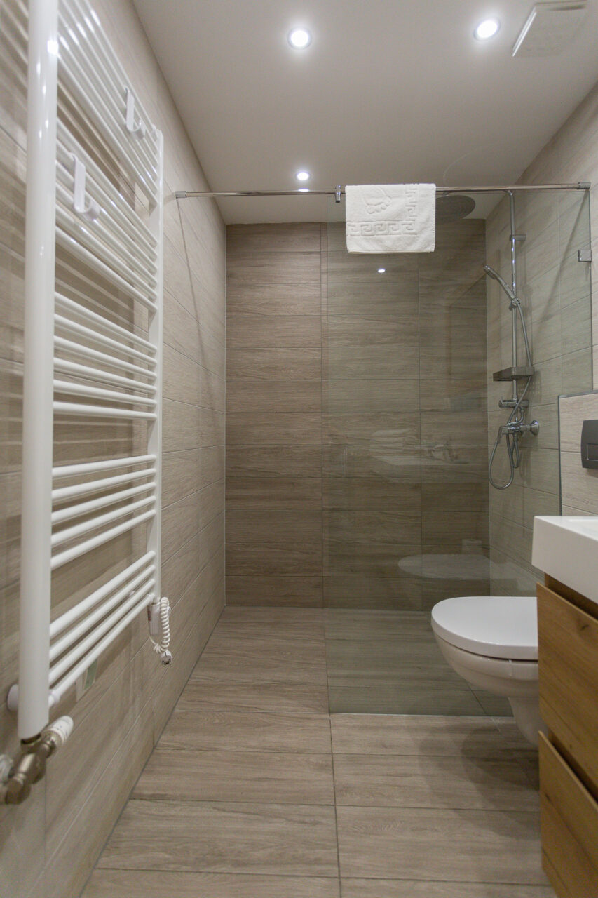 Az egész apartmanban mennyezetbe épített hűtő-fűtő rendszer gondoskodik az állandóan kellemes hőmérsékletről.