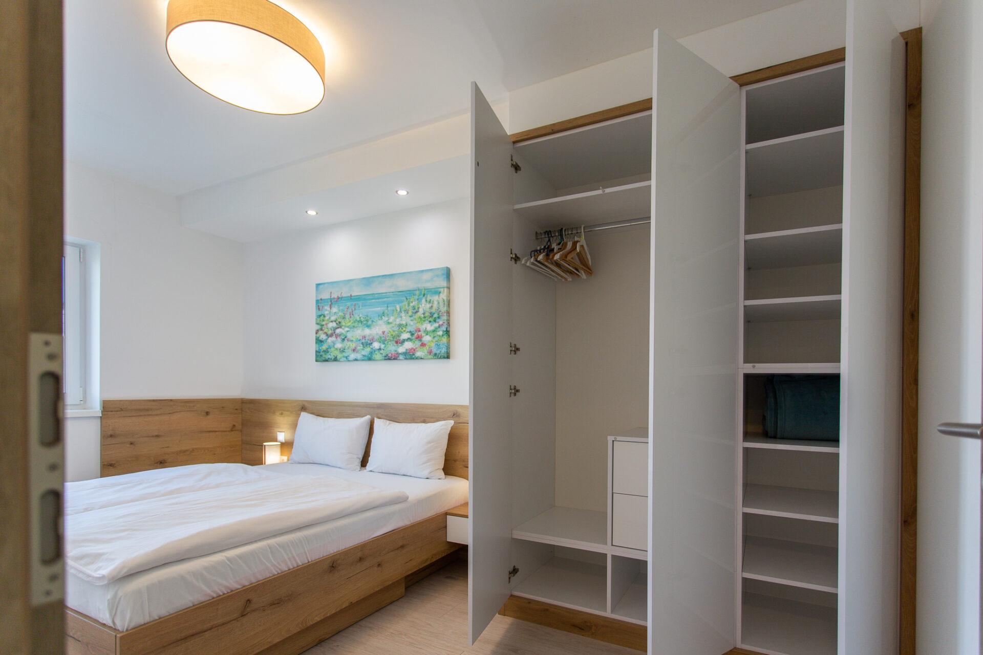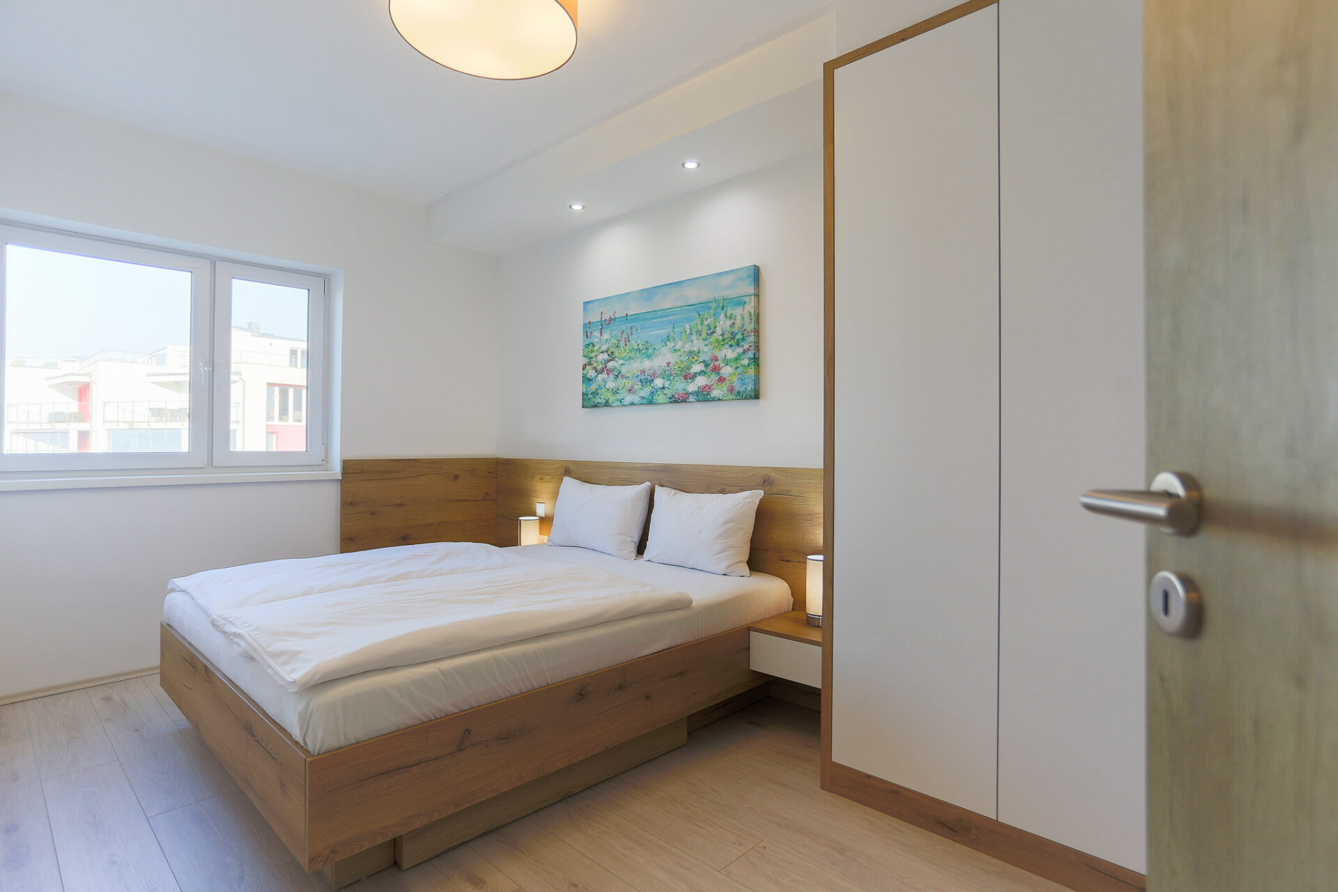 A hálószobában 1-1 db franciaágy, míg a nappaliban szintén egy kinyitható kanapé használható, így összesen maximum 6 fő kényelmes elhelyezésére.